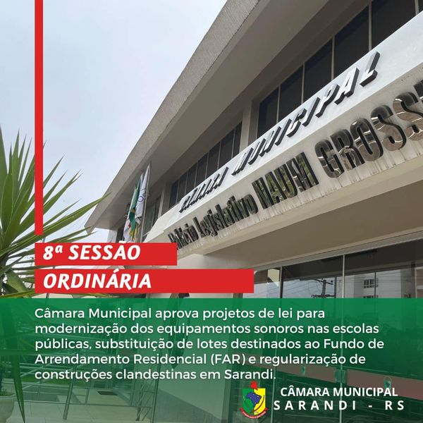 • Câmara Municipal de Sarandi aprova projetos de apoio educacional e esportivo em sessão ordinária.