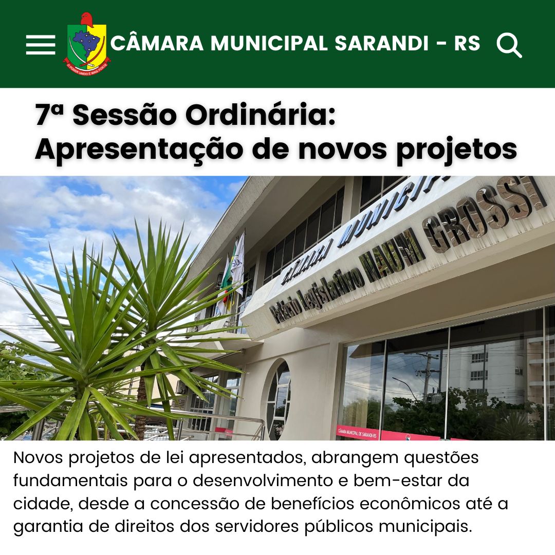 • 7ª Sessão da Câmara Municipal: Novos projetos em tramitação.